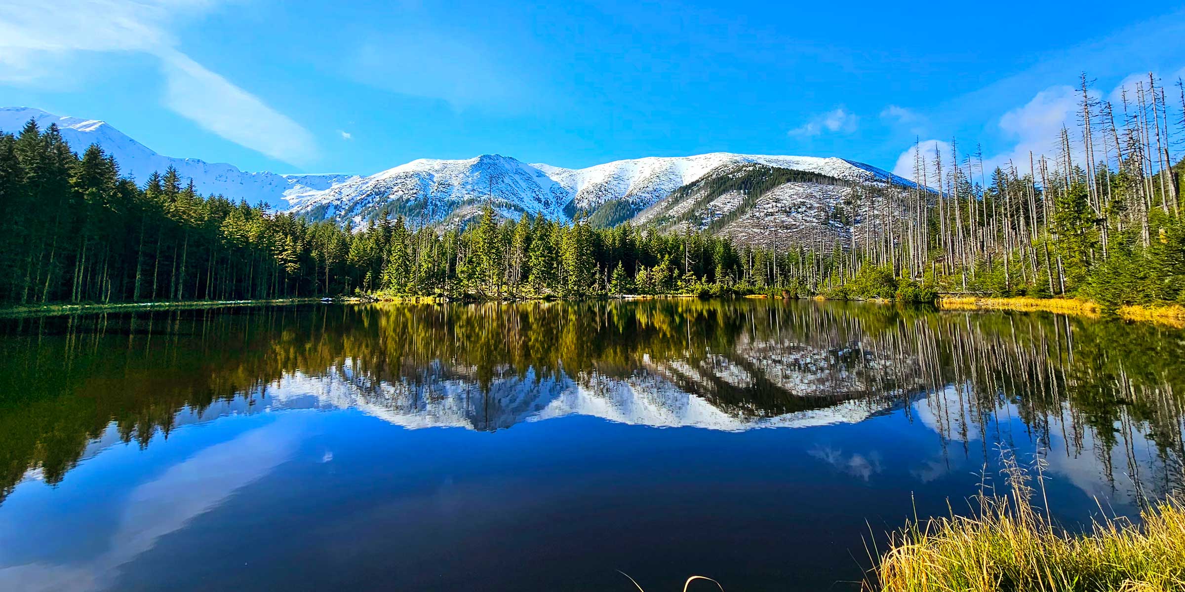 Unser Ziel war die Berghütte Ornak, aber kurz davor führte noch ein kleiner Weg zu einem See – und natürlich mussten wir da hin! Zum Glück, denn wir kamen genau richtig: komplett allein am Smreczyński Staw, einem kleinen, stillen Bergsee auf etwa 1.200 Metern Höhe, umgeben von dichten Wäldern und mächtigen Gipfeln.